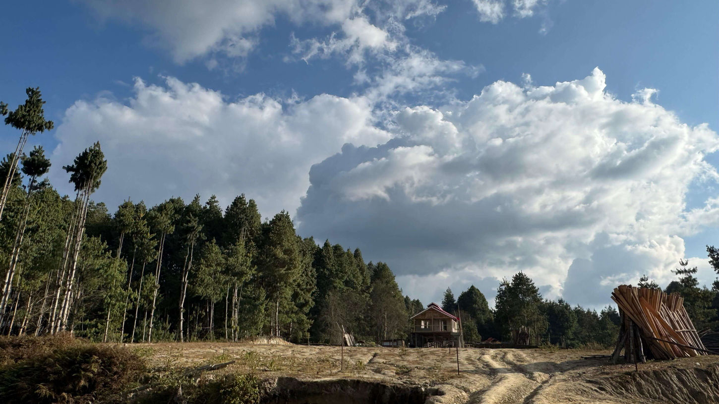 Just a short walk from Supung Dree Ground and Sii Lake, the property features open sunlit fields surrounded by lush pine trees. The sunlight filters through fluffy clouds, casting soft shadows across the landscape—creating a peaceful setting ideal for a retreat or investment.